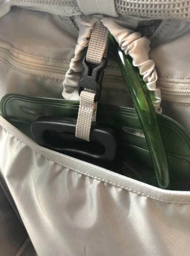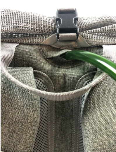 - A water reservoir pocket to store a water bladder bag (not included) -- perfect for hiking or a long day of travel!