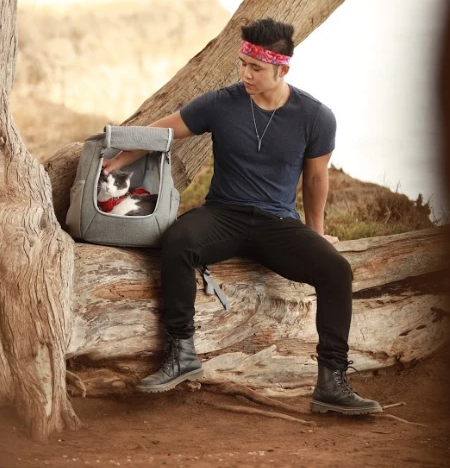 Our newest cat backpack model, "The Navigator" Convertible Cat Backpack, was designed with rugged, outdoorsy kittiesand their pawrents in mind. With creative additions like fully mesh siding, extra pockets and zippers, and special storage for water, this is the best cat backpack for hiking and exploring. Whether you wear it as a cat hiking backpack or convert it to a traditional carrier, your furry friend will stay cozy and secure. Holds 1-2 cats up to 25 lbs.