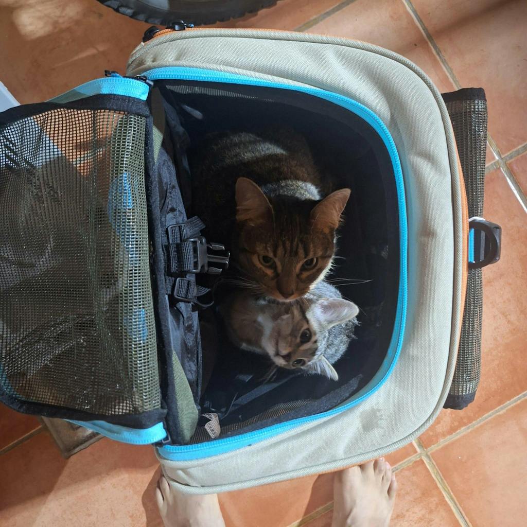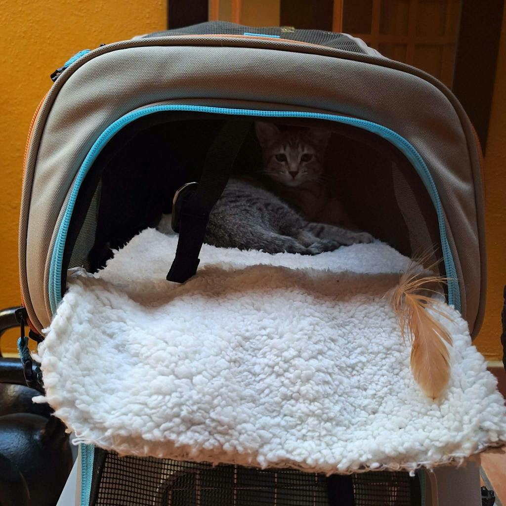 - Two spacious side pockets to hold water bottles, cat treats, supplies, or anything else you might need!